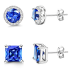 Versatile 2 Pair Style Variety: Includes two timeless designs a sparkling 8.5mm round halo and a sharp 8mm princess cut solitaire giving you the perfect options to switch between classic and glamorous sapphire blue looks.