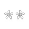 Embrace nature's beauty with these dainty cinquefoil flower stud earrings, expertly designed with 925 sterling silver posts for a touch of fresh elegance. Each earring features a charming five petal silhouette plated in 14K white gold with a central cubic zirconia stamen that captures the light with every move. These petite studs are nickel free and lead free, ensuring a hypoallergenic experience that is gentle on sensitive skin while providing a sophisticated and irritation free floral accent to any ensemble.